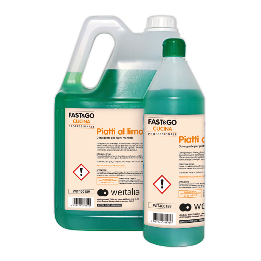 Detergente liquido al limone per lavaggio manuale stoviglie. Sgrassa efficacemente le stoviglie ed elimina gli odori grazie anche alla sua profumazione al limone.