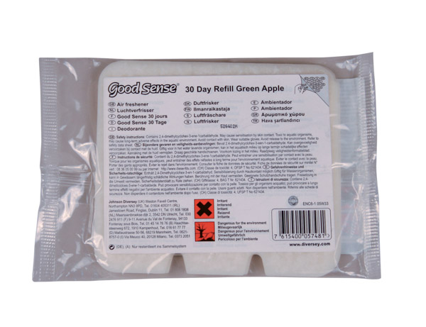 Deodorante neutralizzatore di odori per piccoli ambienti. Lascia nell'aria una piacevole fragranza alla mela verde. Ogni refill dura circa 30 giorni in ambienti di circa 10 mq.