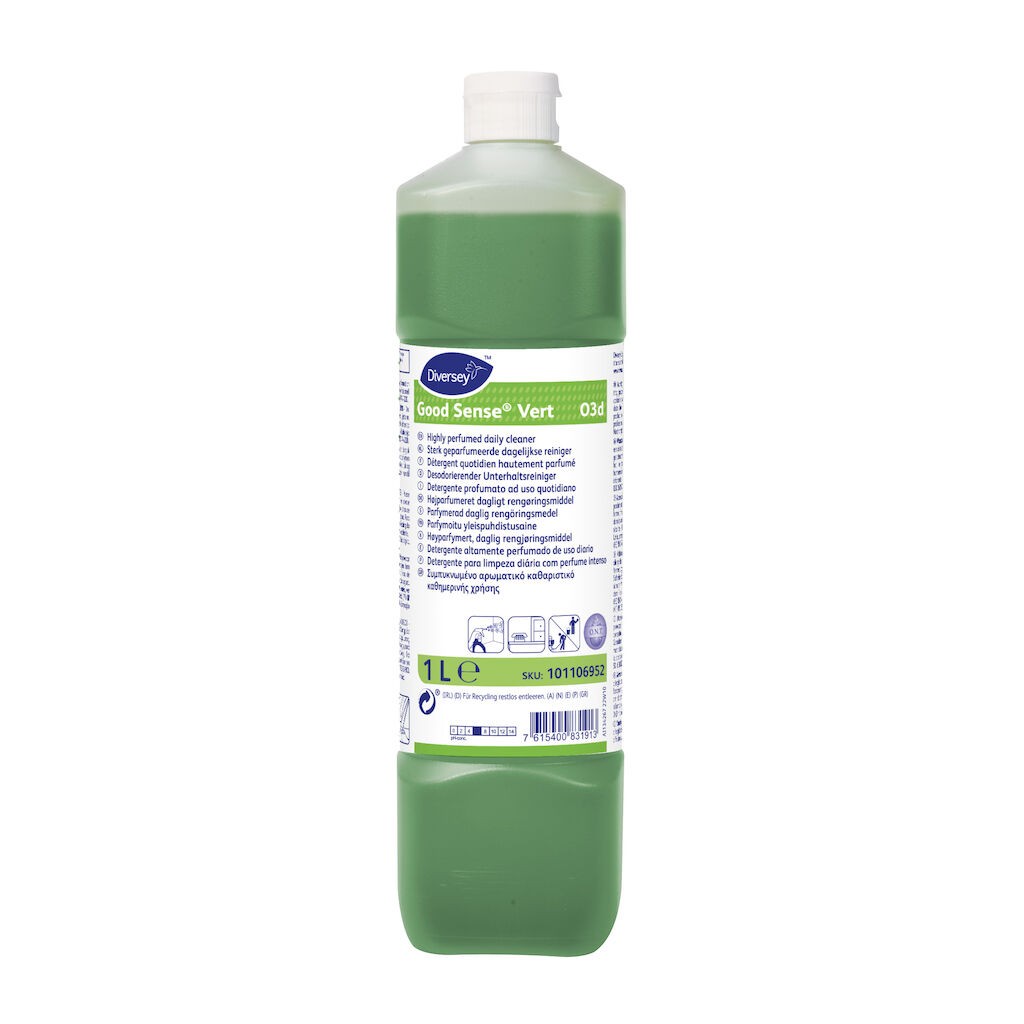 Good Sense Vert è un detergente altamente profumato per uso quotidiano con azione neutralizzante degli odori per superfici dure lavabili.