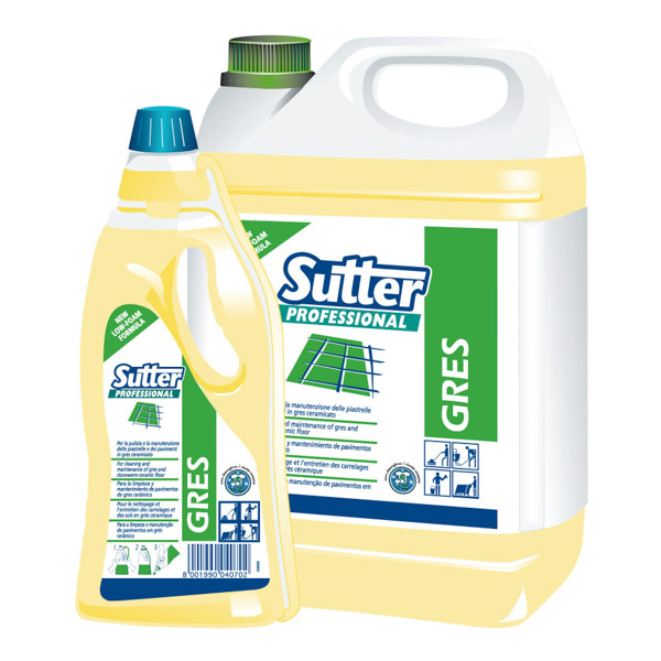 Detergente concentrato polivalente per le pulizie ordinarie e periodiche dei pavimenti in gres o pavimenti microporosi. Adatto per uso manuale o meccanico.