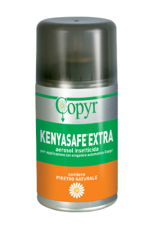 KENYASAFE EXTRA aerosol è un insetticida a base di Piretro naturale e Tetrametrina, sinergizzati con Piperonil Butossido. Grazie al noto potere abbattente dellestratto di Piretro e della Tetrametrina, KENYASAFE EXTRA assicura leliminazione degli insetti volanti (mosche, zanzare, ecc.) che infestano gli ambienti domestici e civili e ne impedisce la reinfestazione in virtù della repellenza esplicata dal Piretro stesso. La speciale valvola a dosaggio eroga una quantità prestabilita di prodotto, sufficiente ad assicurare il controllo di circa 180 mc di ambiente. KENYASAFE EXTRA non contiene solventi minerali. Per erogatore automatico 2CP010.