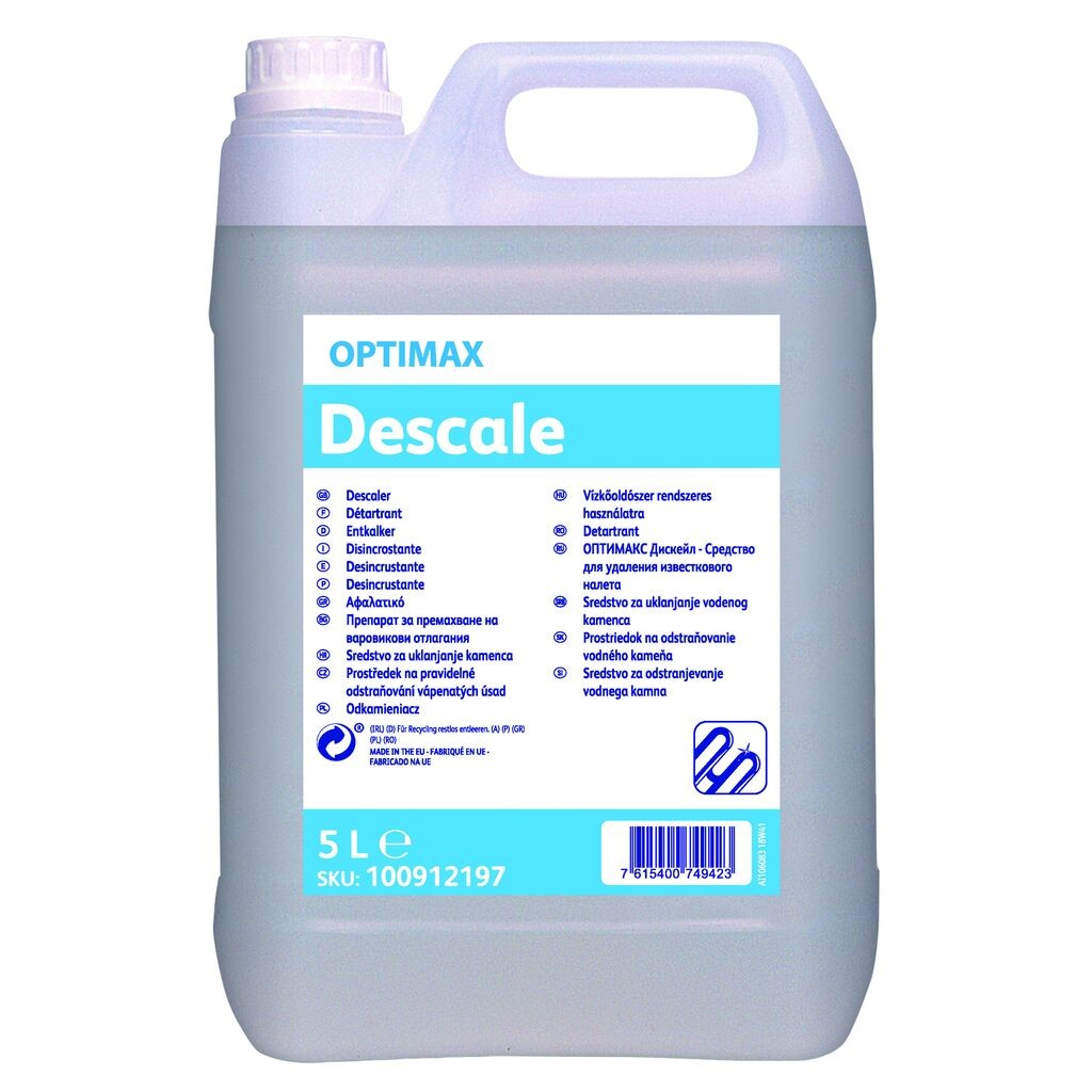 Optimax Descale è un disincrostante acido per la rimozione del calcare da attrezzature e utensili di cucina e per la disincrostazione della lavastoviglie.