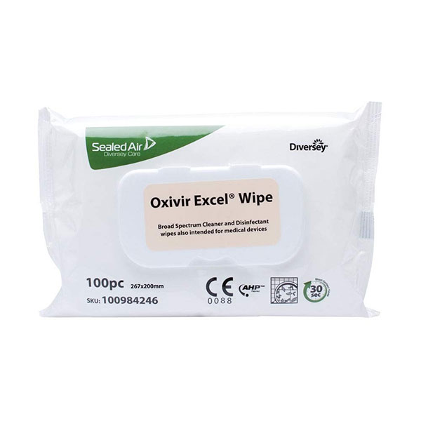 Le salviette disinfettanti Oxivir Excel Wipes si basano sulla tecnologia AHP, la migliore alternativa ai disinfettanti tradizionali che fornisce una efficacia virucida completa in soli 30 secondi, pur essendo molto delicate sulle superfici e con il minor rischio per il personale e i clienti. Il principio attivo, il perossido di idrogeno, si scompone in acqua e ossigeno, sostanze ecocompatibili, pochi minuti dopo l'uso non lasciando residui che potrebbero essere dannosi o alterare l'aspetto della superficie. Garantisce la disinfezione delle superfici, quando utilizzato seguendo le indicazioni sotto riportate: EN1276 - EN13727 - EN16615 Battericida: 1 min; EN13624 - EN1650 - EN16615 Lieviticida: 5 min; EN14476 Virucida: 30 sec.