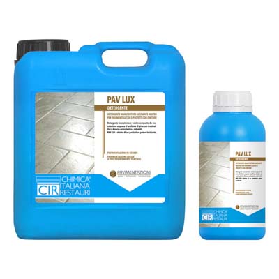 Detergente neutro ad effetto autolucidante per la manutenzione quotidiana delle CIR PAVIMENTAZIONI in gres, pietre naturali lucidate o piombate, clinker e CIR PAVIMENTAZIONI trattate a cera.