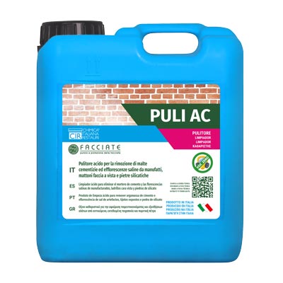 Detergente a base acida che permette la rapida rimozione di malte cementizie, residui di posa ed efflorescenze saline da mattoni faccia a vista, manufatti e pietre naturali resistenti agli acidi.