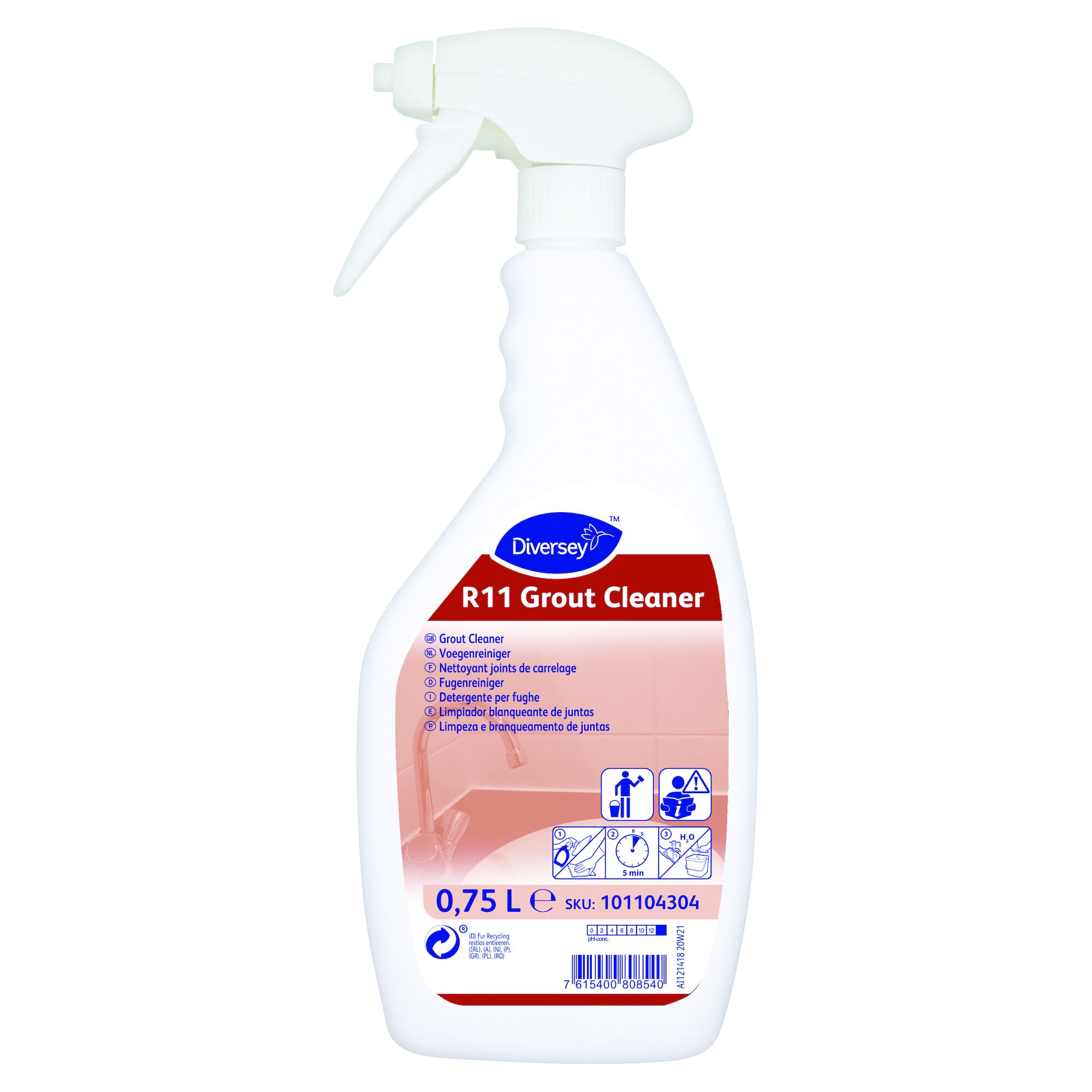 Detergente e sbiancante a base di cloro altamente efficace per la pulizia delle fughe. Pronto all'uso, utilizzare tal quale.
