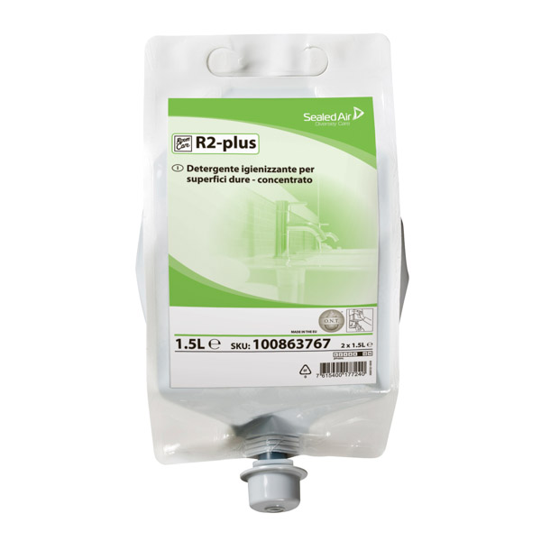 Detergente igienizzante per superfici dure. Concentrato. Per l'utilizzo con i sistemi di dosaggio/diluizione Divermite/DQFM. Formula a base di acido citrico. Tecnologia ONT.