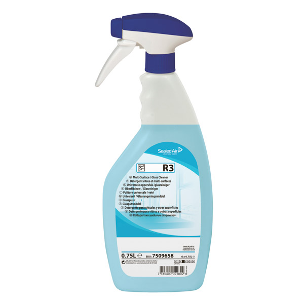 Detergente per vetri multiuso. Ideale per la pulizia senza aloni di vetri e superfici dure resistenti all'acqua. Ph neutro. Rimuove rapidamente sporco e grasso. Tecnologia ONT.