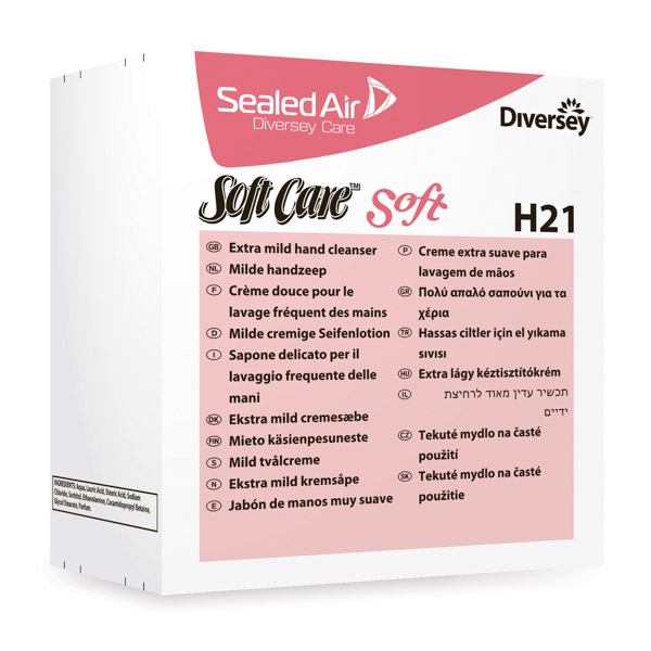 Detergente lavamani delicato, efficace azione emulsionante dello sporco, azione delicata sulla pelle. Ideale per il lavaggio frequente delle mani. Utilizzabile solo con SoftCare Line Dispenser.