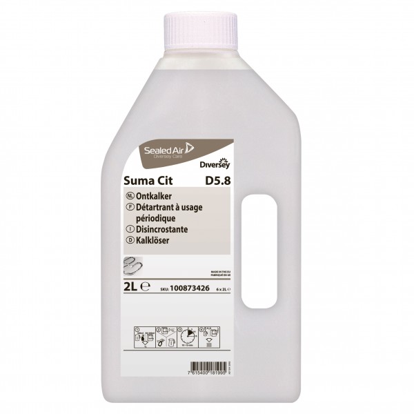 Disincrostante acido per la rimozione del calcare da attrezzature e utensili di cucina e per la disincrostazione della lavastoviglie, a base di acidi organici (acido citrico) non inquinanti.
