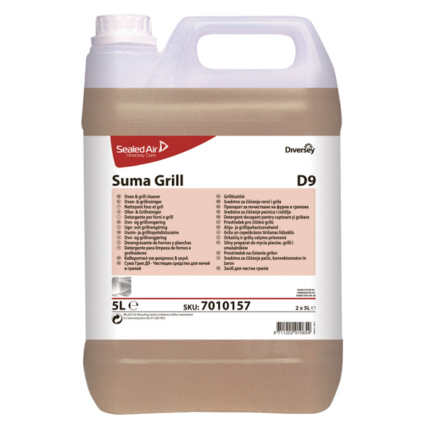 Detergente energico alcalino per la pulizia periodica di forni, grill e friggitrici con forti incrostazioni di grasso e residui carboniosi. Energica azione alcalina.