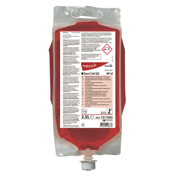Detergente acido per il bagno. Concentrato. Adatto all'utilizzo su superfici cromate e di acciaio inossidabile. Lascia una fresca fragranza. Da utilizzare con il sistema di dosaggio Quattroselect. A base di acido citrico.