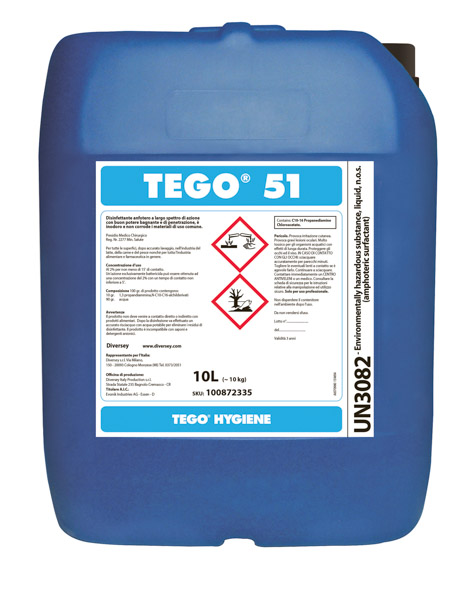 Disinfettante anfotero a base di alchilammine. Utilizzato nella disinfezione di pareti, pavimenti, piani di lavoro, apparecchiature. Può essere applicato a spruzzo. P.M.C. n. 2277.