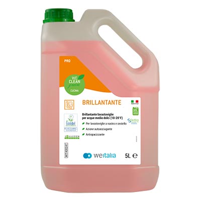 Brillantante liquido acido ad azione brillantante ed autoasciugante. Garantisce risultati ottimali utilizzato in acqua di risciacquo con temperatura compresa tra 60-80°.