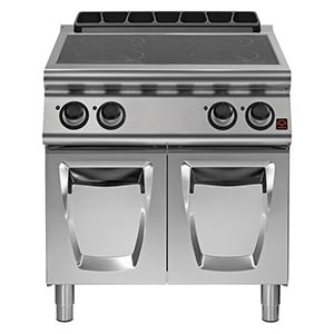 Cucina elettrica a induzione su vano con porte in acciaio inox inossidabile AISI 304, spessore 20/10 (2MU216). Potenza totale 20 kW (4 x 5 kW).