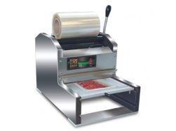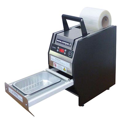 Macchina Termosaldatrice da banco, pannello di controllo con programmazione digitale di temperatura e tempo di saldatura multiformato, possibilità di saldare 6 diversi formati di contenitori senza cambio stampo tramite cassetto interno rotante con selettore mobile (P1-P2-G-H) con Bobina B1. Anno 2020.
