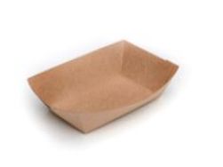 Vaschetta in fibra di cellulosa per l'asporto e il consumo di patatine e altri alimenti fritti. Idonea all'utilizzo in forno a microonde. Completamente compostabile. Dimensioni: cm.14x12,5.