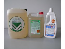 Pulitore sgrassante concentrato per la pulizia con stecca tergivetro di vetri e cristalli, favorisce lo scivolamento della lamina di gomma ma non ne riduce lazione meccanica. Lascia la superficie perfettamente pulita, trasparente, brillante e priva di aloni.