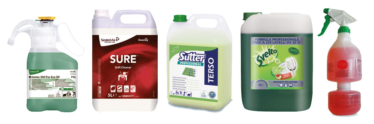 Una vastissima scelta di prodotti delle migliori marche professionali nei più diversi formati: liquido, in polvere, gel, pasticche, granulare, concentrati, superconcentrati. Specifiche tipologie di formulati si prestano a modulare le offerte sulle esigenze del cliente in maniera assolutamente personalizzata.